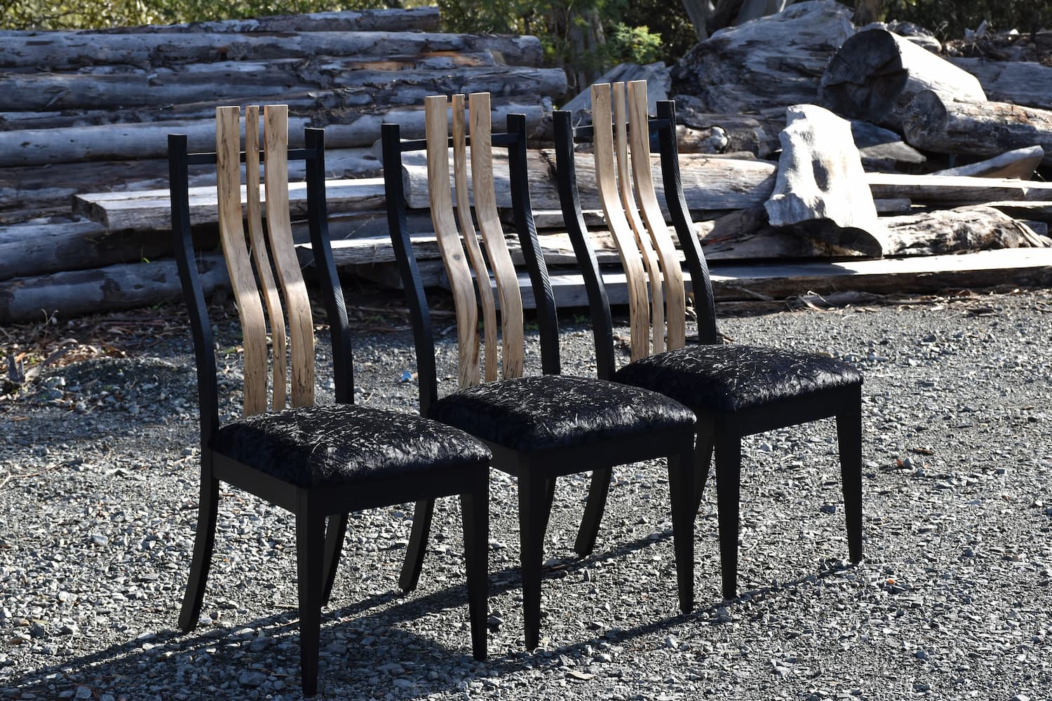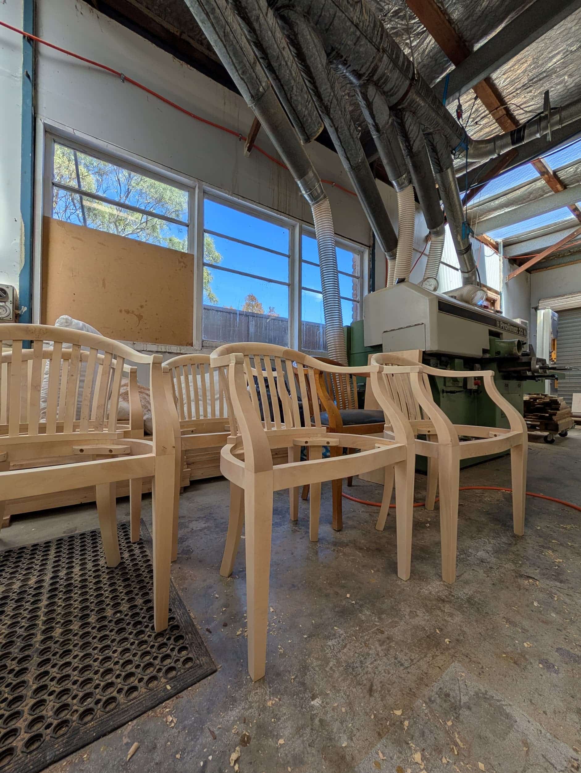 Custom Huon pine dining chairs handcrafted in Tasmania