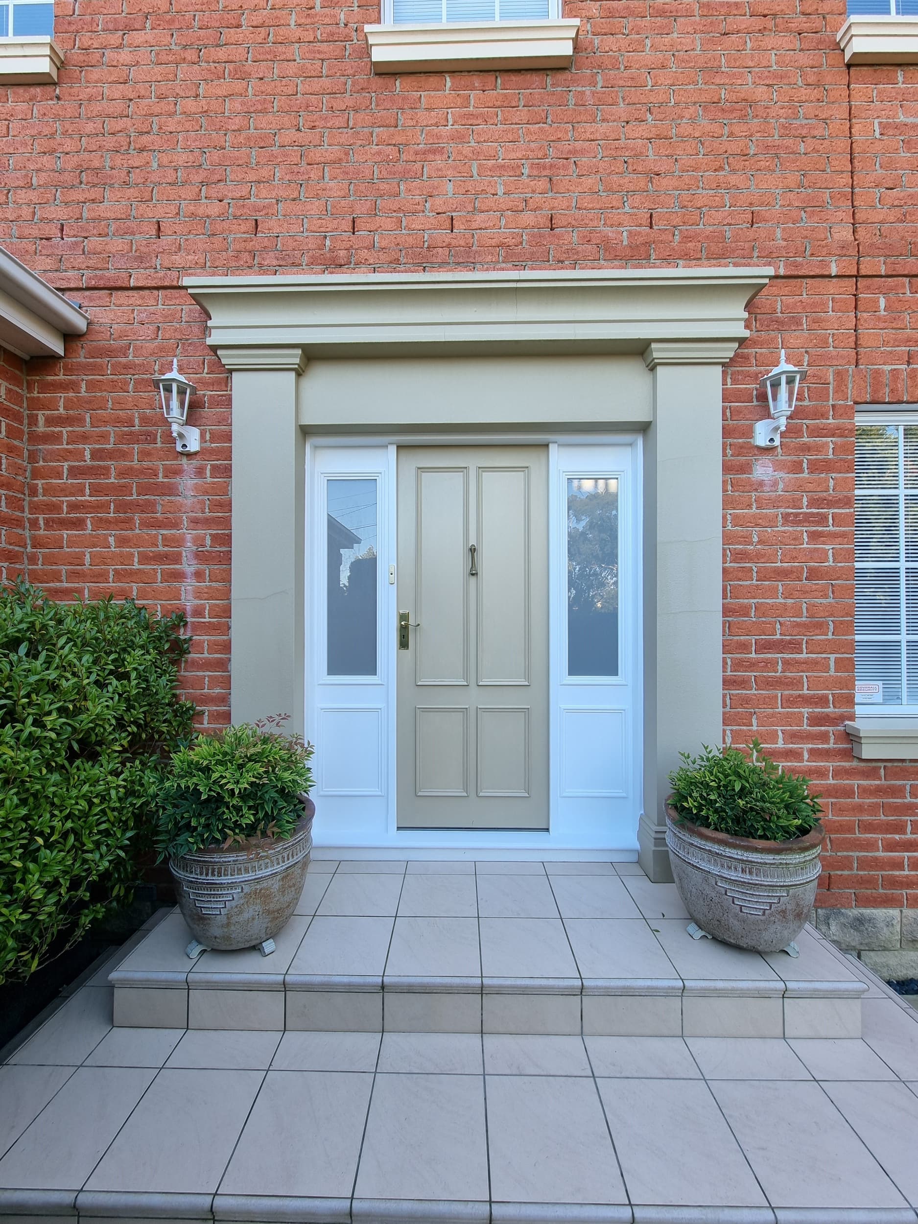 Custom entry door installation with sidelights and decorative surround