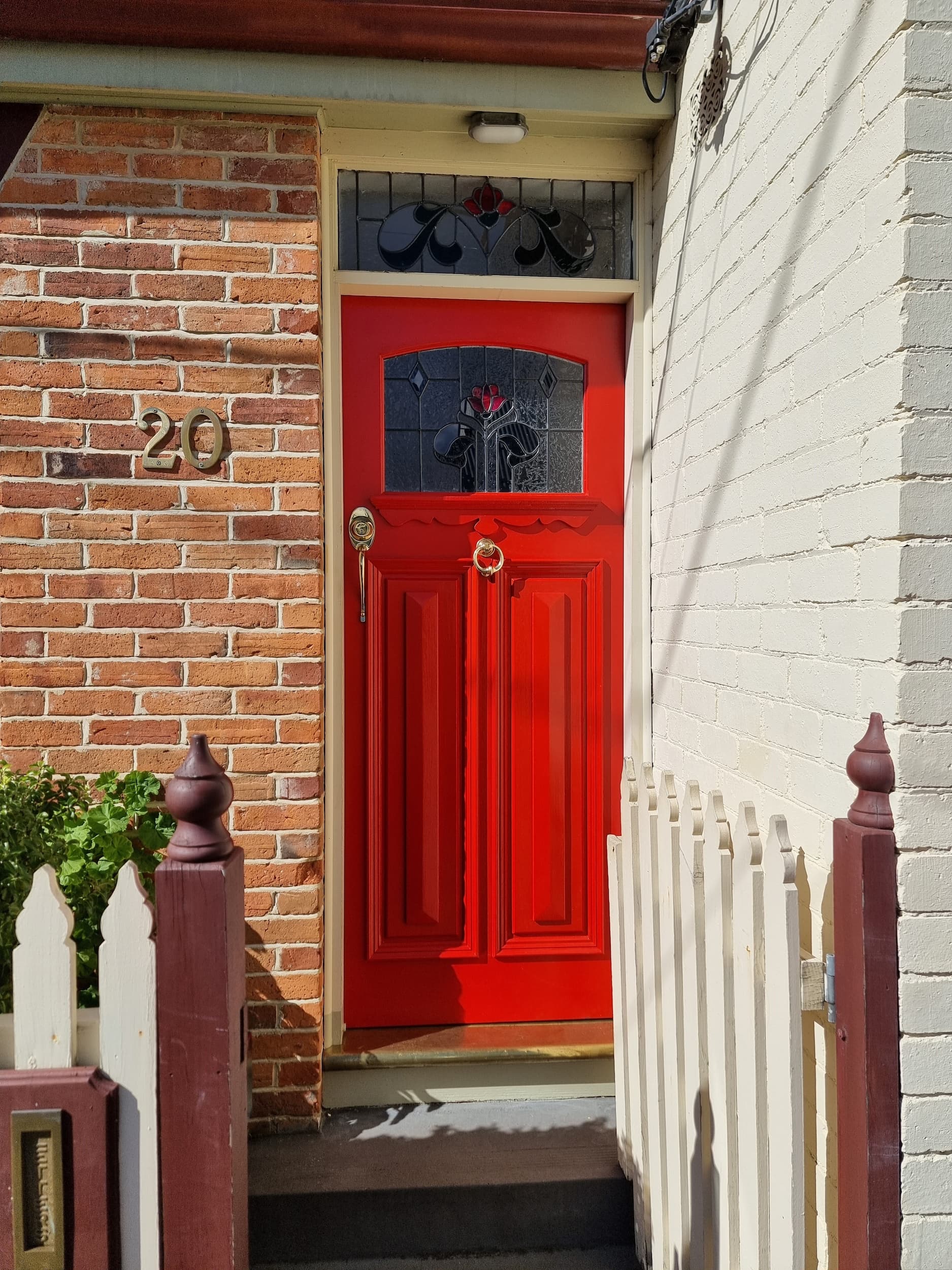 Traditional painted timber front door with stained glass detail