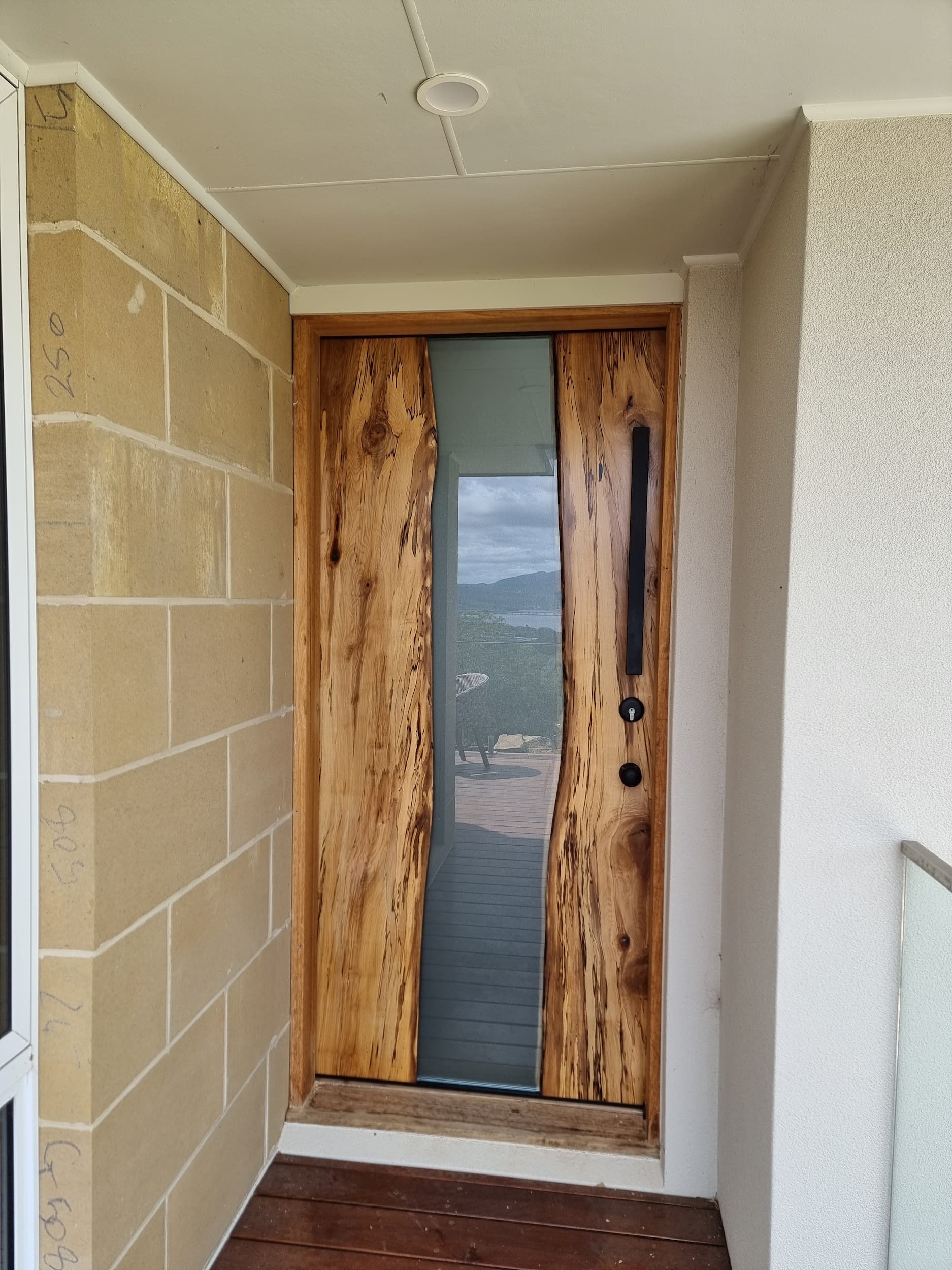 Stunning Blackheart Sassafras timber front door crafted by Craig Howard & Son.