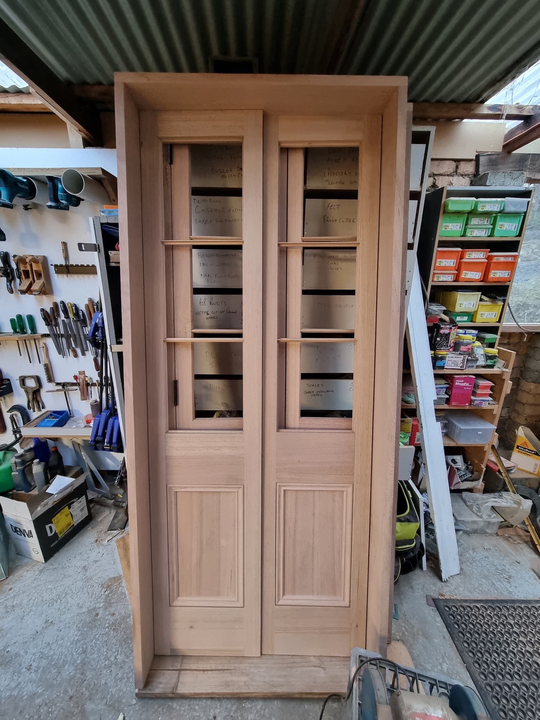 Custom Tasmanian oak double doors ready for installation