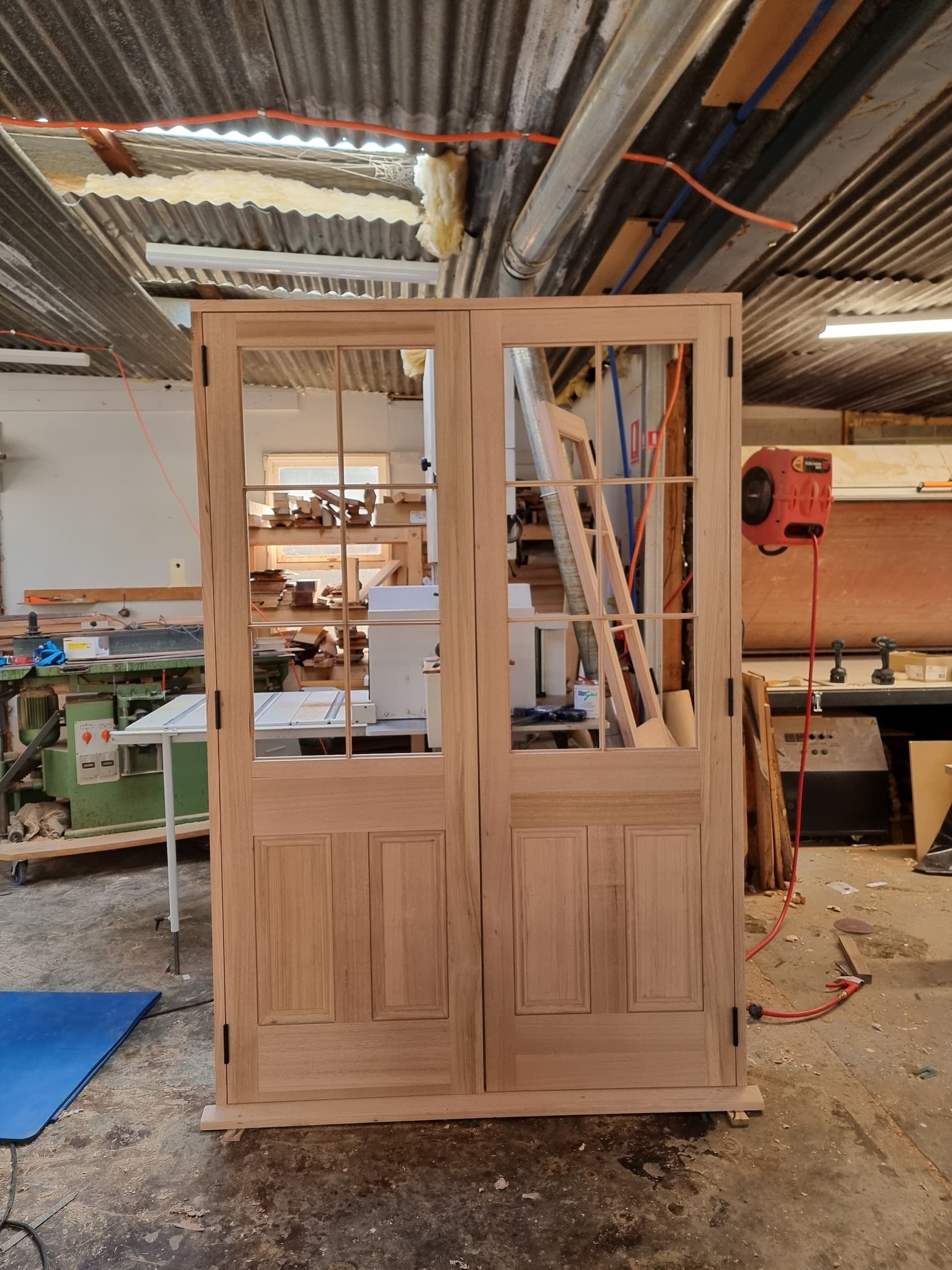 Custom Tasmanian oak French doors ready for installation