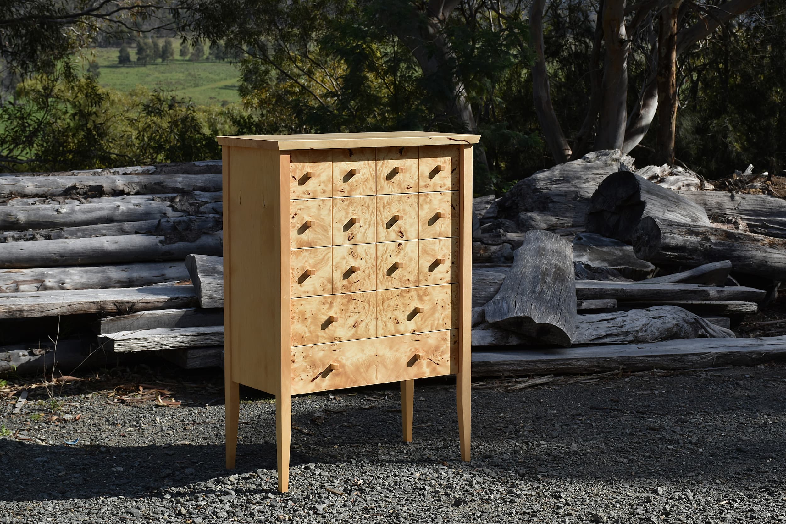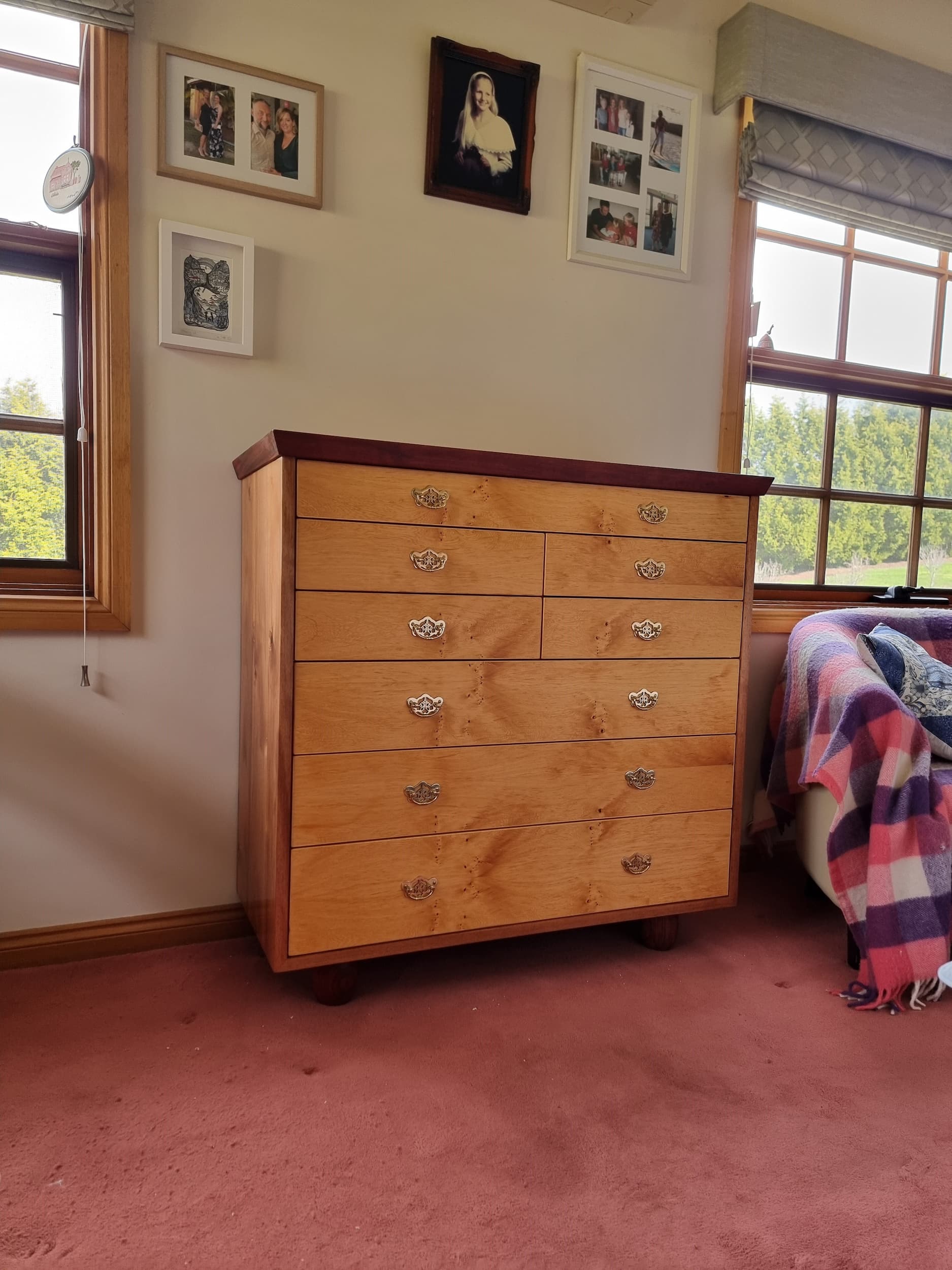 Custom birds eye Huon pine chest of drawers